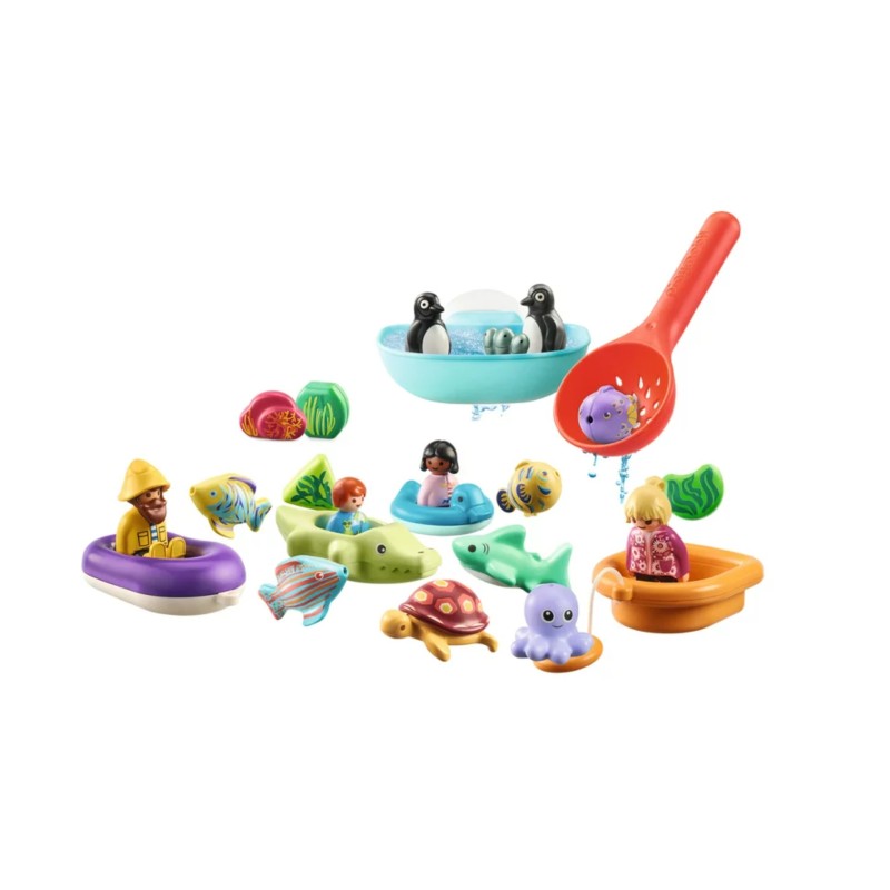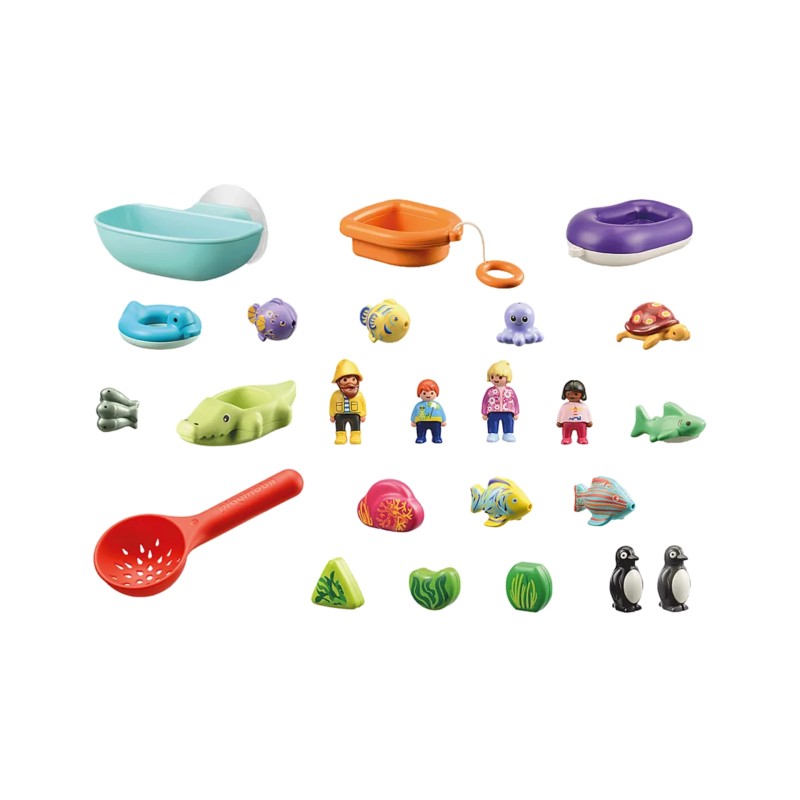 The colorful play world PLAYMOBIL 1.2.3 AQUA promotes fine motor skills, creativity and cognitive understanding of relationships.