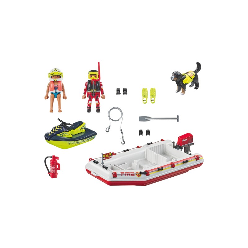 Navigate thrilling rescue missions with the new PLAYMOBIL Fire Boat with Aqua Scooter.