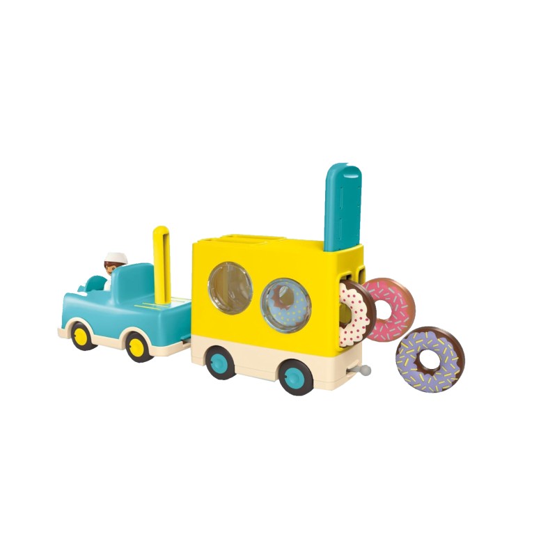 your child can stack the tasty rings on the back of the vehicle or transport them in the matching trailer.