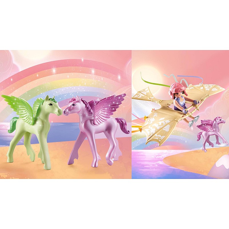 Take heavenly journeys to the rainbow with the cute Pegasus foals in the clouds from PLAYMOBIL.