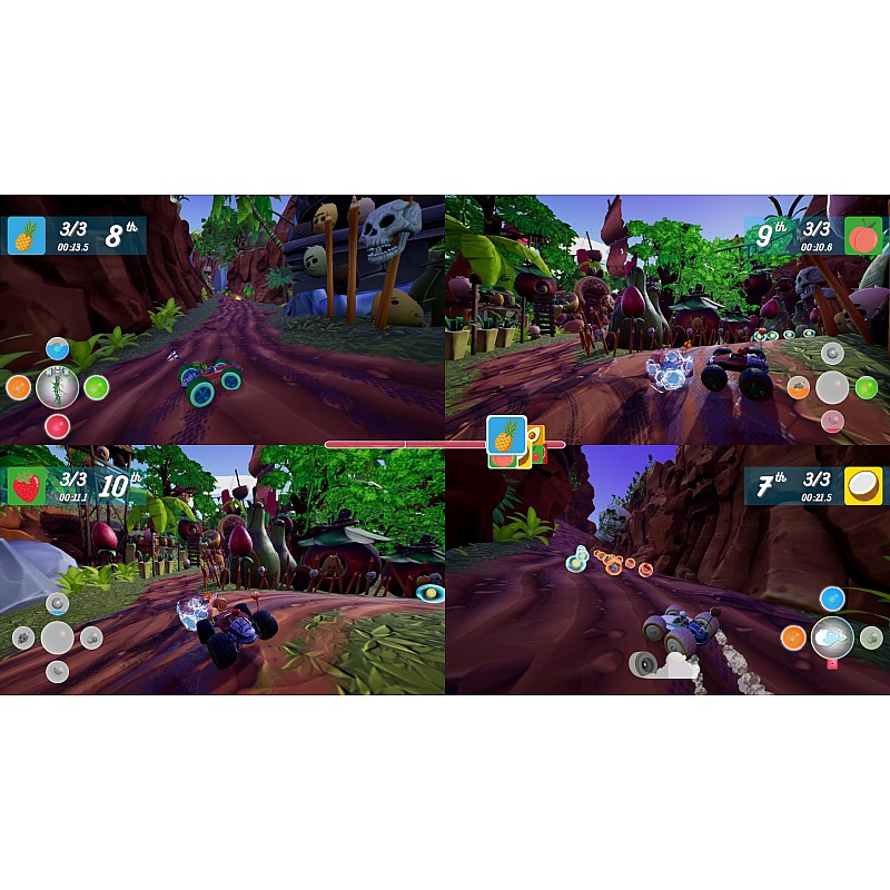 - Don't beat yourself up! Share the fun of All-Star Fruit Racing with everyone in two, three and four player split-screen action!