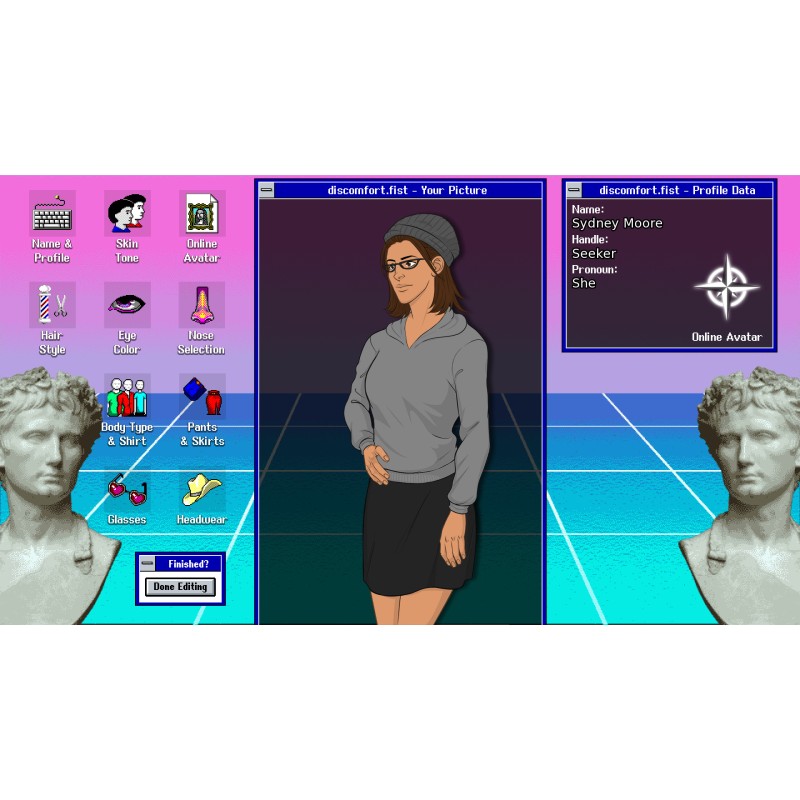 - Molly Nemecek's character art and Greg Mirles' pulsating synthwave songs.