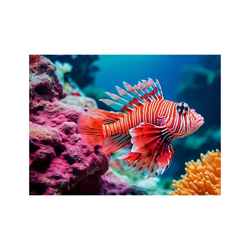 Explore the underwater world with this captivating 500 -piece Jigsaw puzzle with an impressive red lion fish.