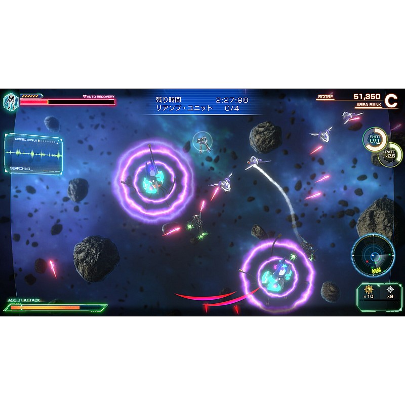 The stages include several styles of Shoot'em Up game, such as vertical shooting, horizontal shooting, 360 -degree shooting and more.