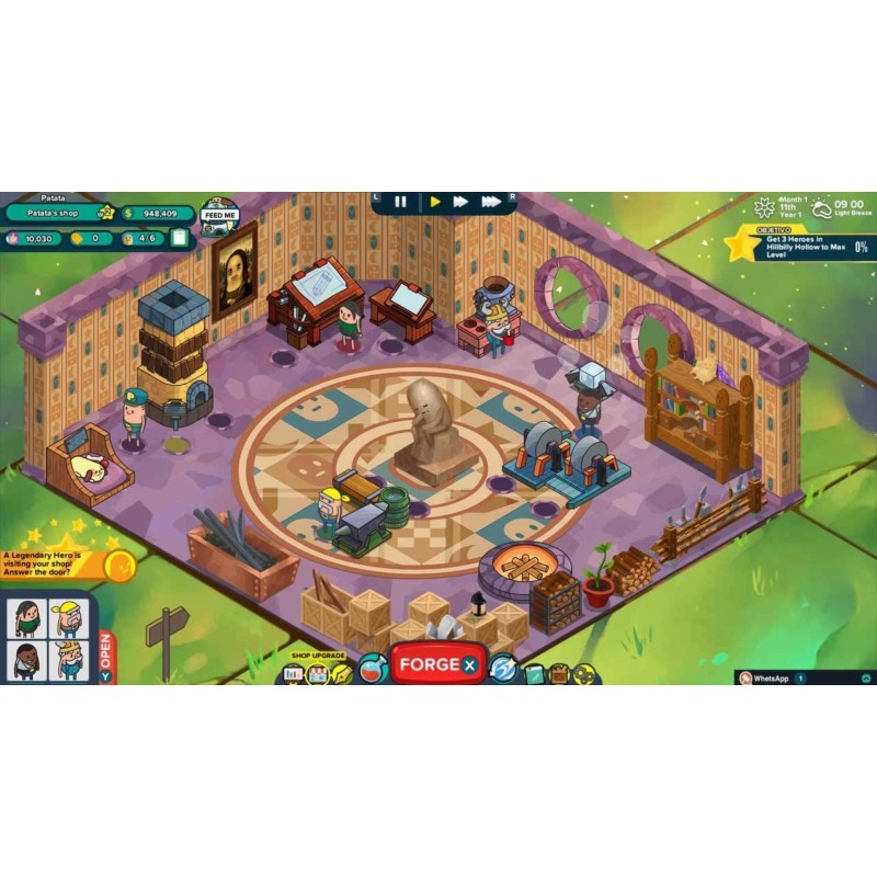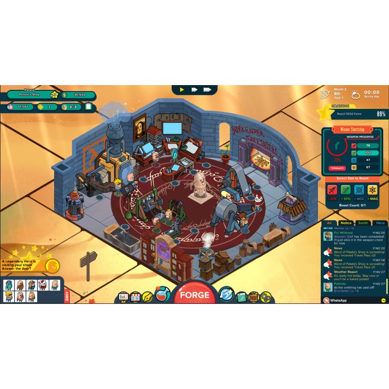 Use your potato smiths to forge weapons and sell them to questing heroes. You will meet more than 70 potato heroes, forge more than 200 weapons, expand your business in 20 strange areas, manage 30 strange potato blacksmiths, discover 10 legendary pop culture heroes. . . and even adopt a potato dog!