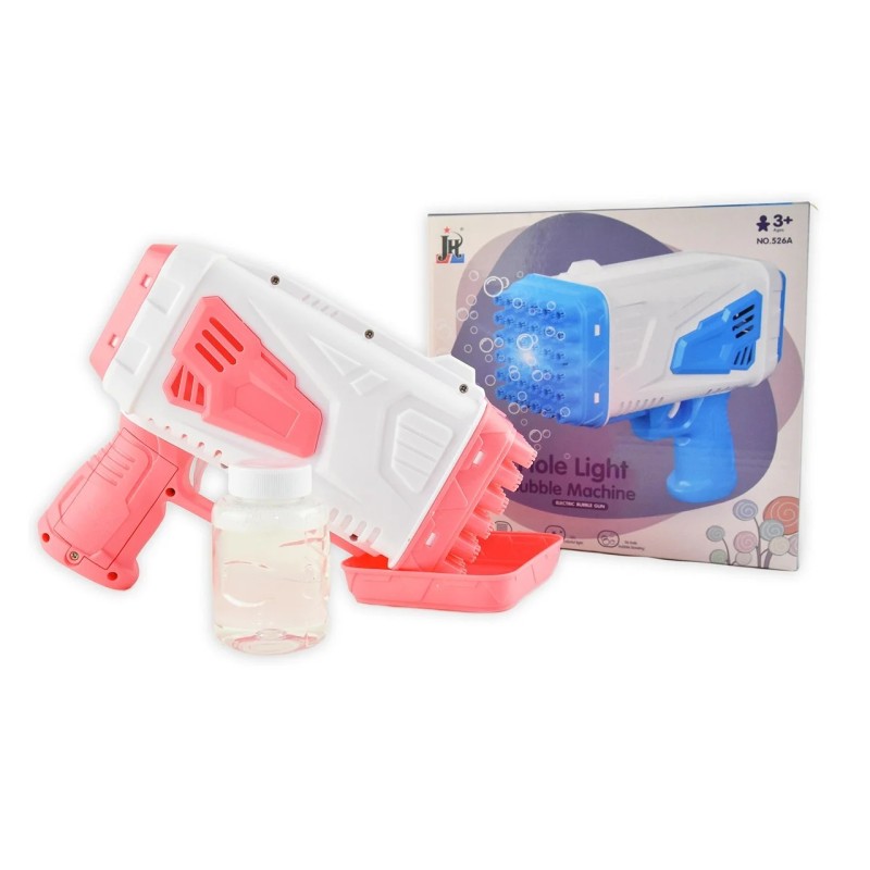 This magic gun creates glowing soap bubbles and includes LED lights that add a spectacular effect to the game.