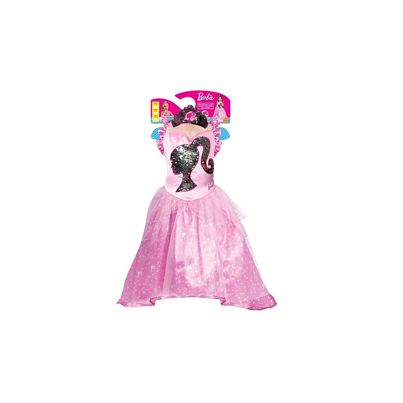 The official Barbie product created by Rubies is a Barbie princess costume for children. It includes a pink Barbie princess dress, sequin bodice, full skirt and matching headpiece!
