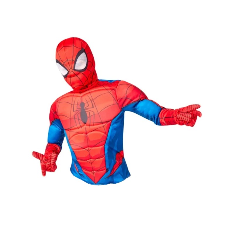 This superhero costume is designed for children between 4 and 7 years old and has an authentic spider-man.