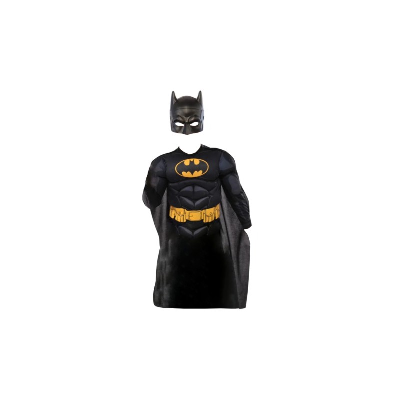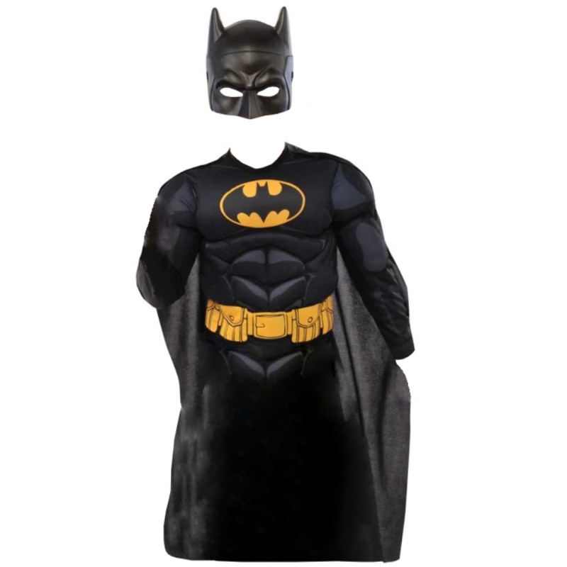 Having a top with muscle print for a strong look, a removable pilgrim for dramatic appearances and a classic Batman mask to complete the disguise.