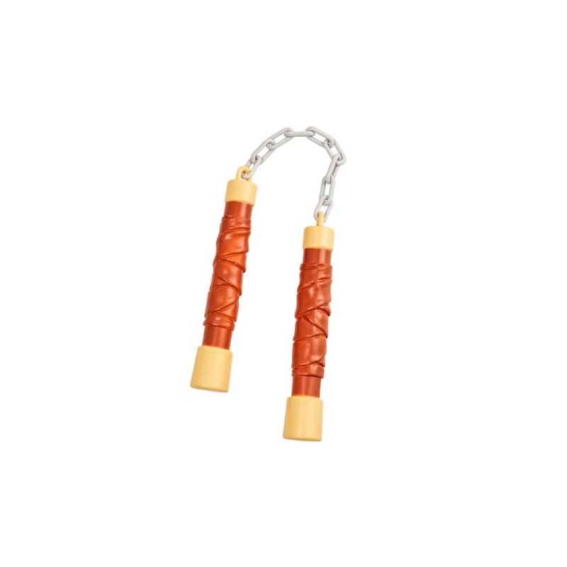 Includes: A nunchuck toy set. Nunchucks are molded plastic and connected with plastic chains
