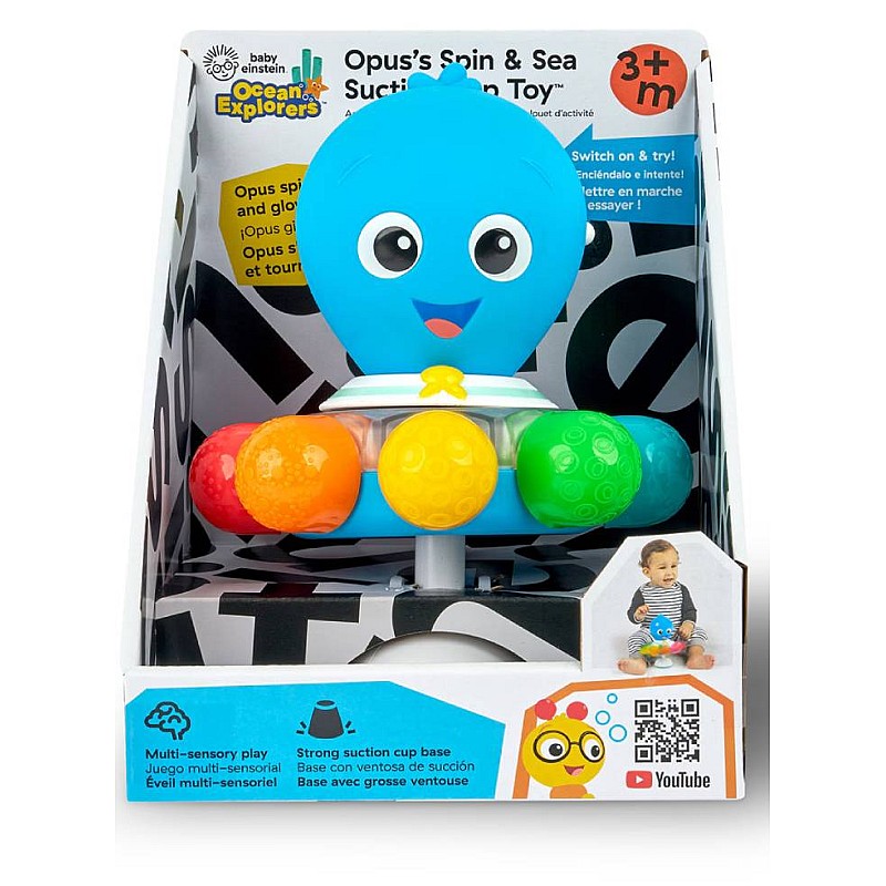 Baby Einstein Ocean Explorers Opus's Spin and Sea Suction Cup Toy helps baby take multi-sensory learning for a spin with vibrant lights and colors designed to engage and entertain baby at home or on the go.