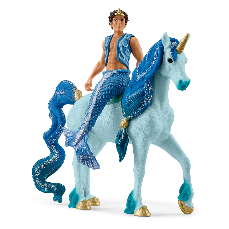 On the back of his unicorn, he explores the dark and deep seas, colorful coral reefs and sunken ships.