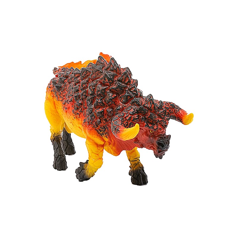 Uh oh: the smoke in his eyes means trouble. The fiery bull is always in attack mode! Which is not surprising, given how temperamental he is: all it takes to make him give in is a single bird perching on his spiky back, which is made of cooled lava!