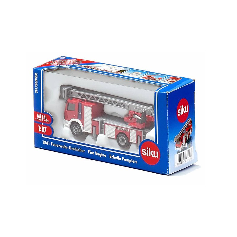 The Siku fire truck with rotating ladder made of zinc cast iron with plastic components in authentic design has movable functional parts for a wide range of exciting play modes.