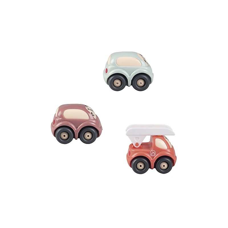 This set of Little Smoby toy cars includes: 3 small toy cars (2 with animal faces and a fire truck).