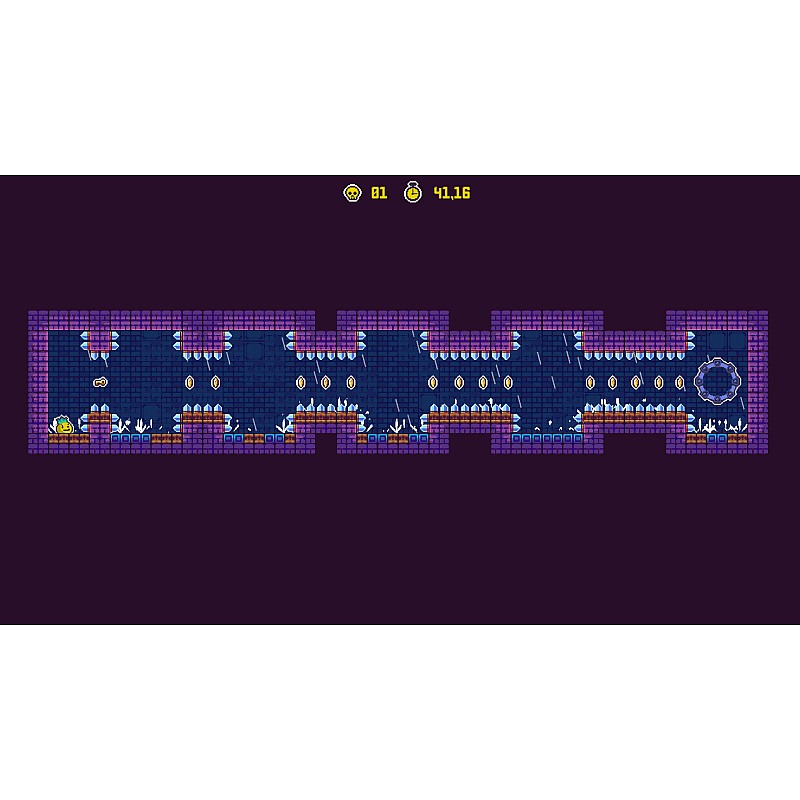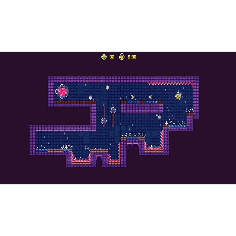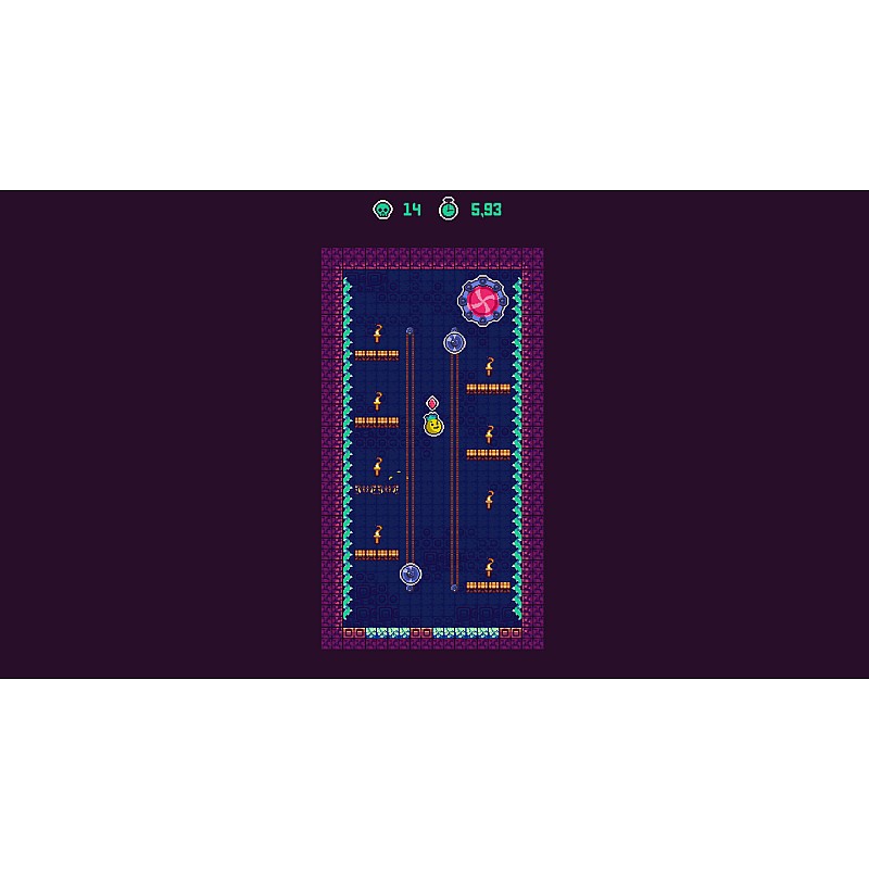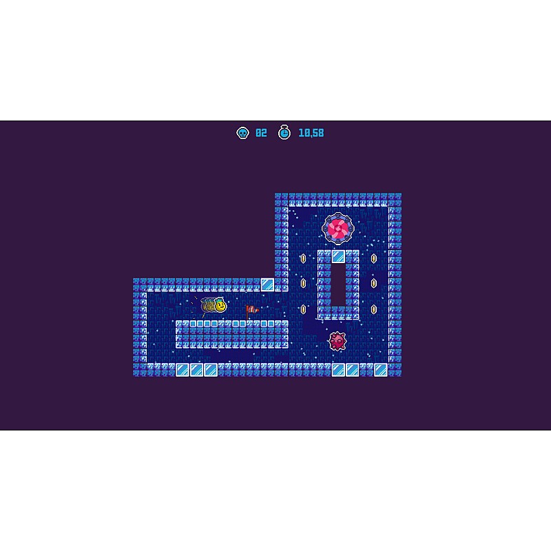The game is a retro platform with pixelated graphics and rapid gameplay, focused on precision and reflexes.