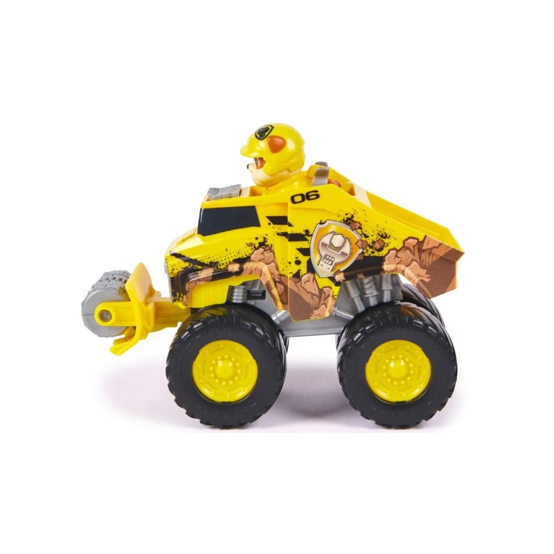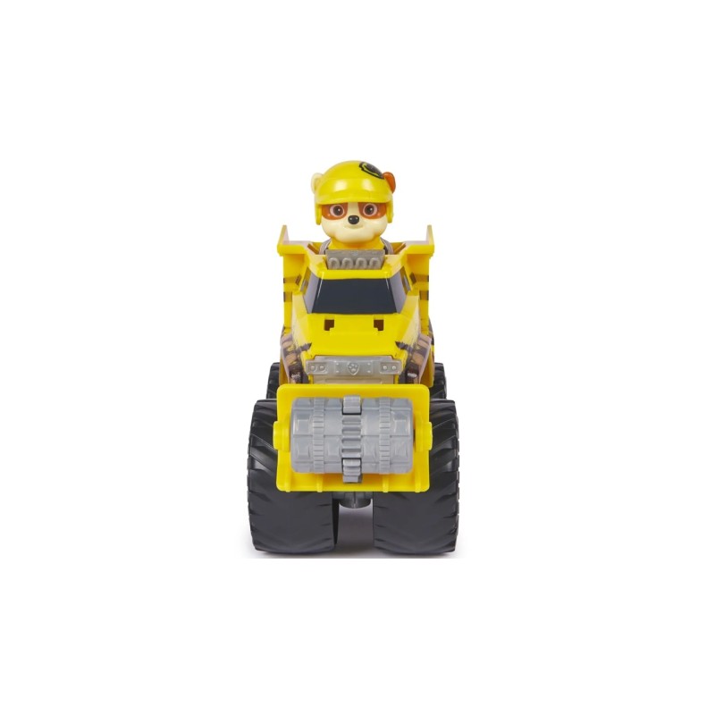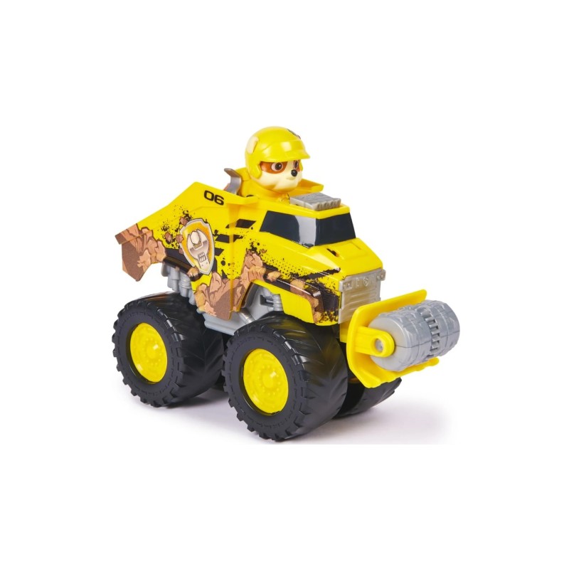 Rubble's Bulldozer themed monster truck gets an interesting makeover. Press the button on the roof to release the spring-loaded plow roller, then spring into action.