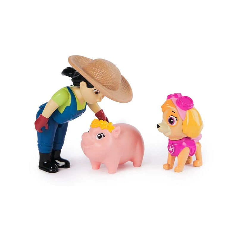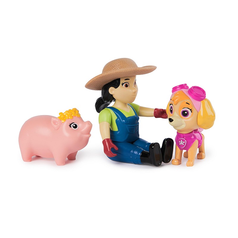 The set contains: 1x Skye figurine; 1x Farmer Yumi figurine; 1x Piggy figurine.