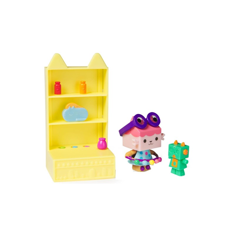 The set includes the Baby Box robot craft toy and a kitty tape dispenser. Unwrap the dollhouse delivery, just like Gabby, to discover the glasses Baby Box will be wearing!
