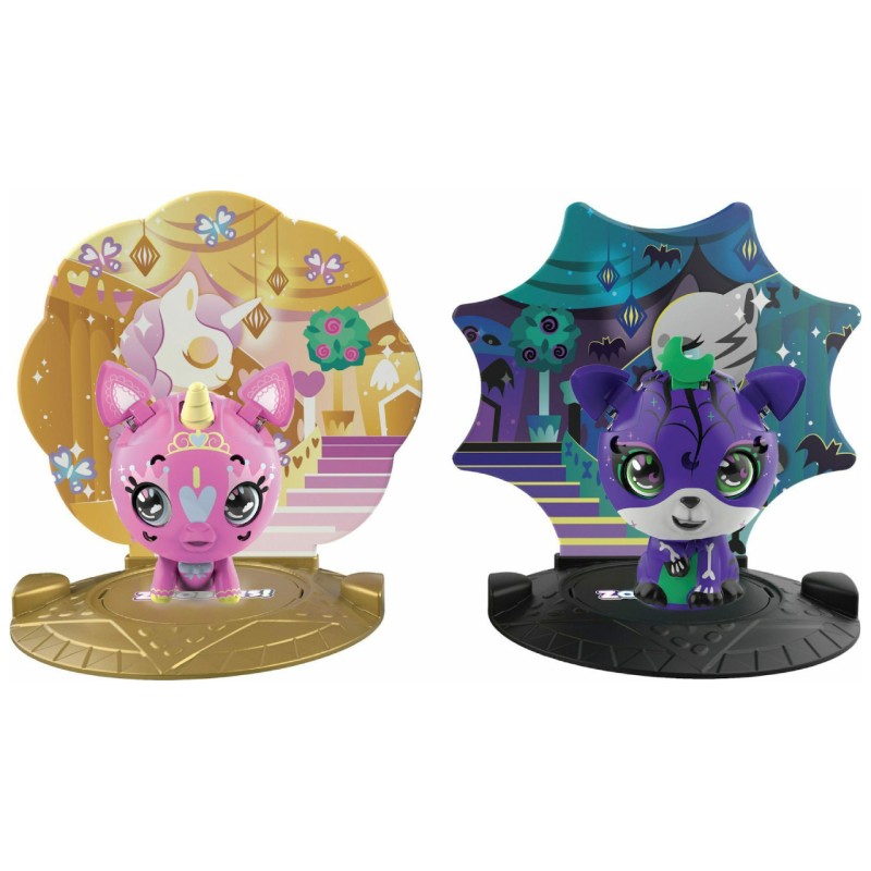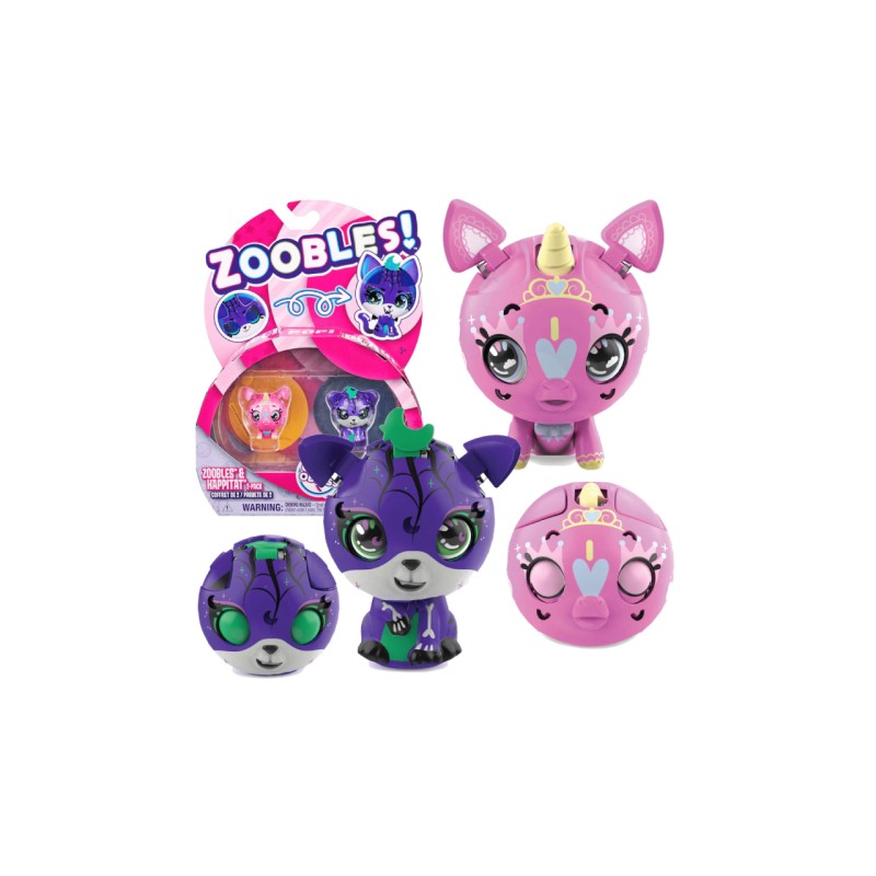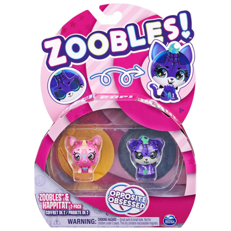 The Zoobles and Happitat 2-Pack includes two oppositely themed Zoobles Animal characters, two matching Happitats with themed backgrounds and a checklist to keep track of your Opus Obsessed collection.