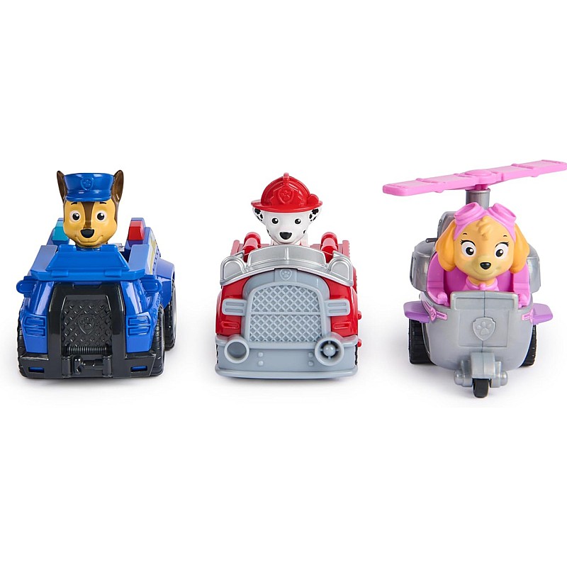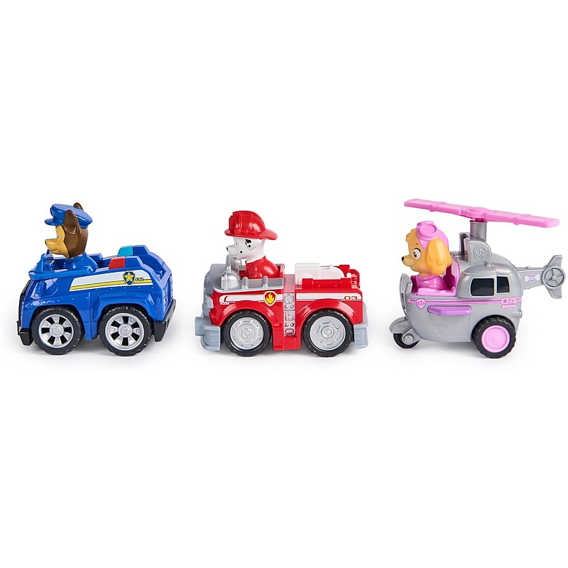 Includes the favorite vehicles of characters Chase, Marshall and Skye, each with authentic details that reflect the design from the animated series.