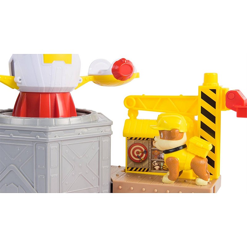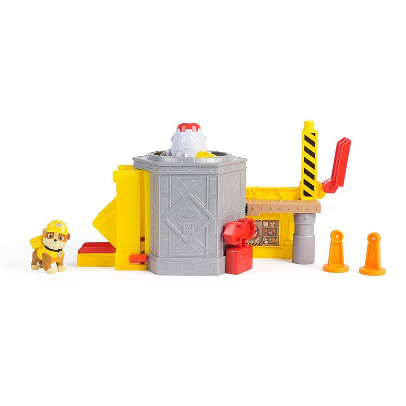 Take your favorite Paw Patrol Rubble Figurine through several play areas! It starts by placeing Rubble on the launch platform.