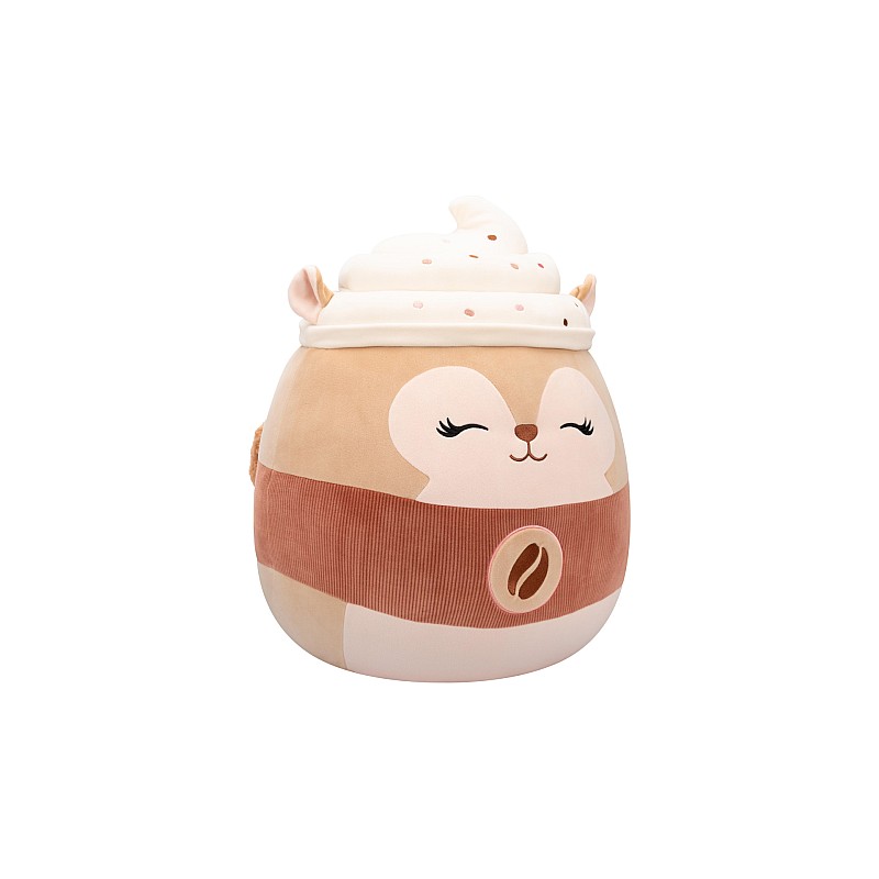 Soft Squishmallows Soft Soft Toys in the shape of a squirrel with a cute embroidered face and a big tail on the back.