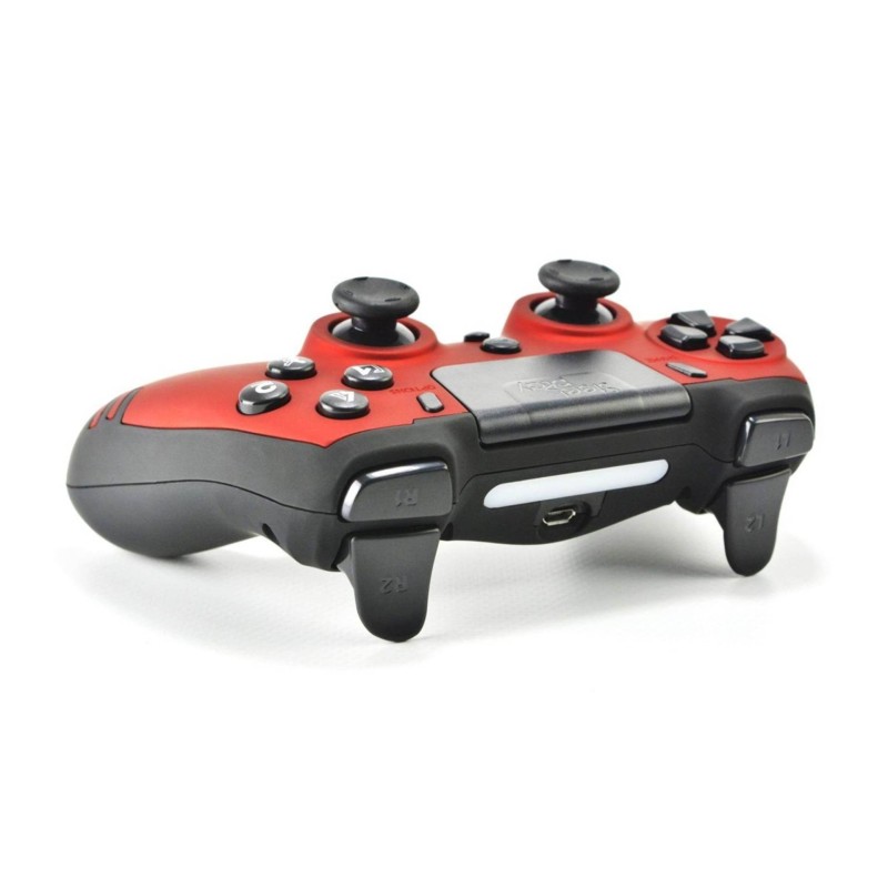 This controller has everything you know about a traditional controller: a classic look with two joysticks, share and options button, touch pad and built-in LED lighting.