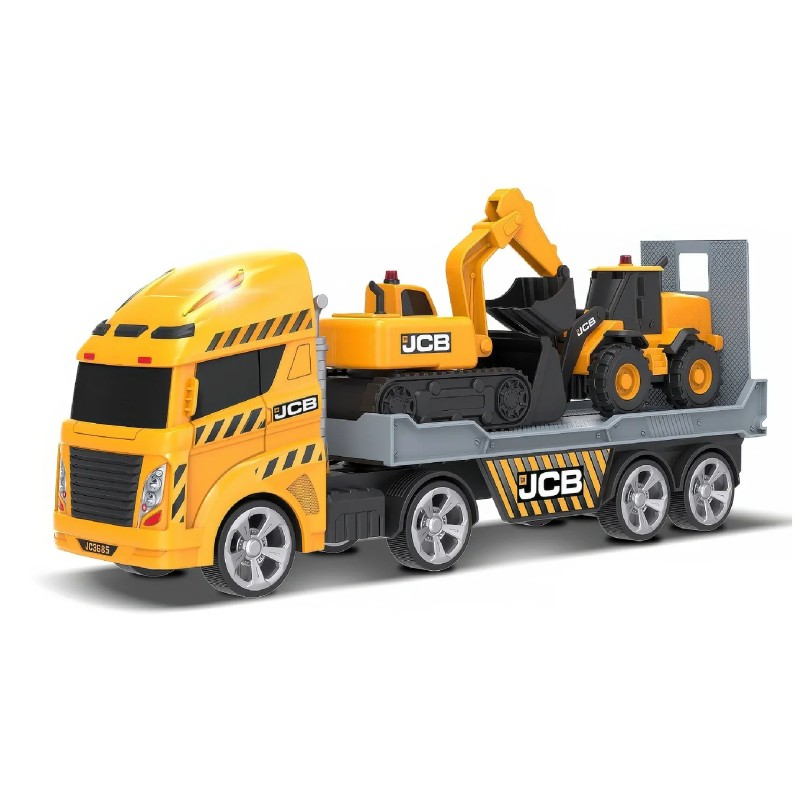 Load and transport your construction vehicles with the Teamsterz JCB Light & Sound Construction Transporter.