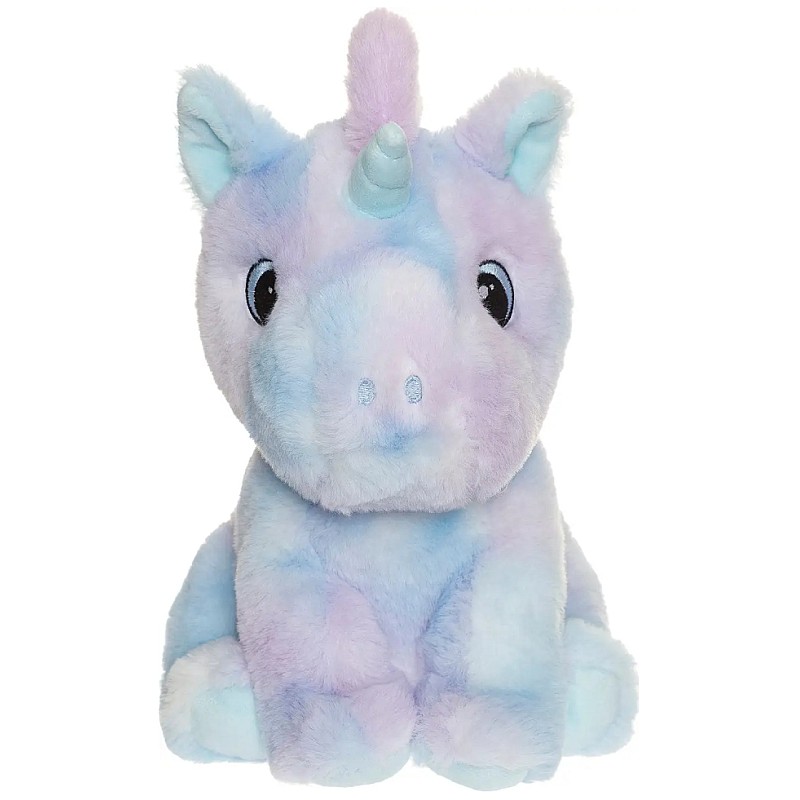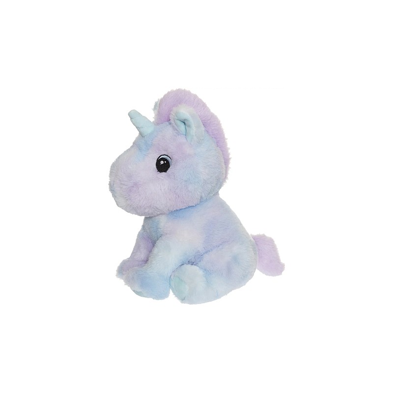 This unicorn colored in pastel shades of purple and blue is a wonderful companion for play and cuddles.