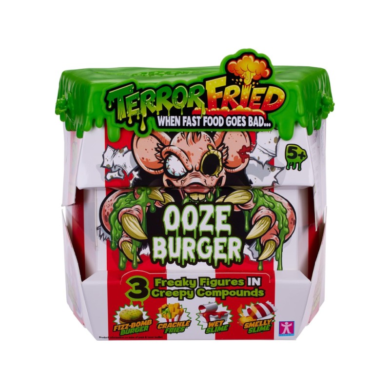 The Ooze Burger meal box includes a burger and fries.