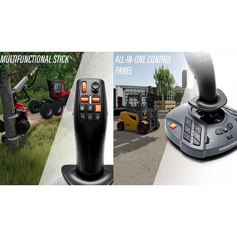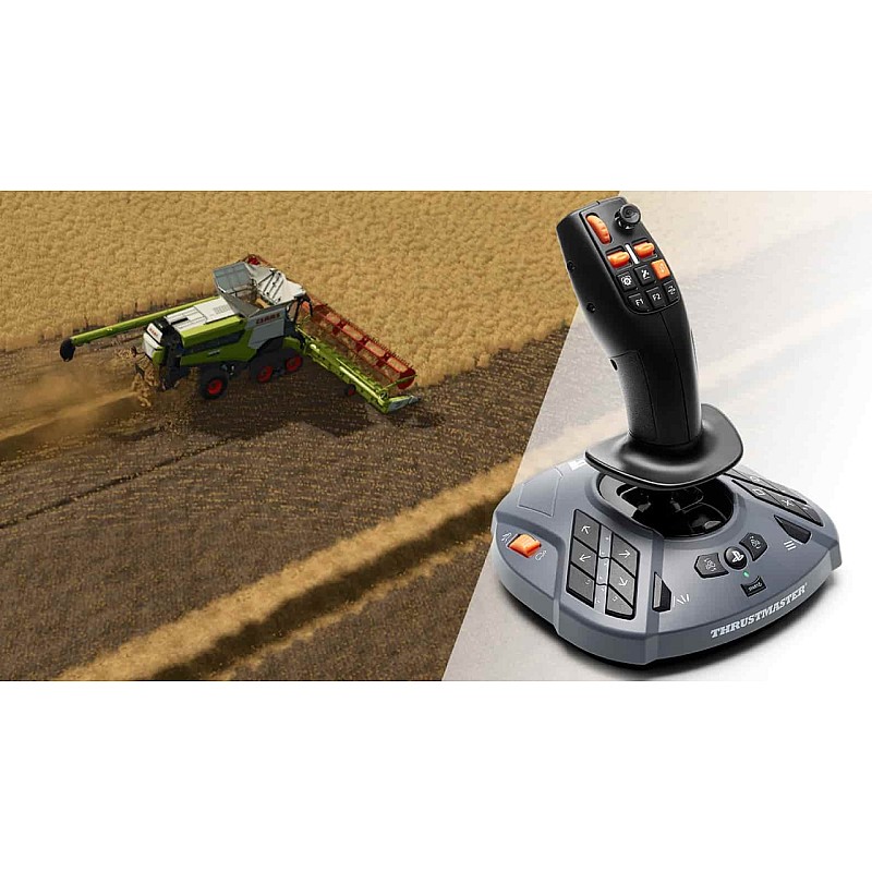 Simtask Farmstick is the joystick designed for the control of agricultural and heavy equipment, developed based on Thrustmaster knowledge in the field of flight simulation.