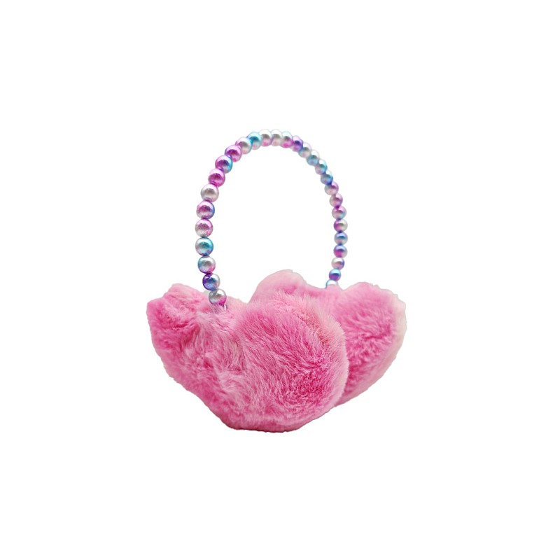 Tinka Plush Earmuffs Pink Hearts W. Pearl Headband (8-800428)