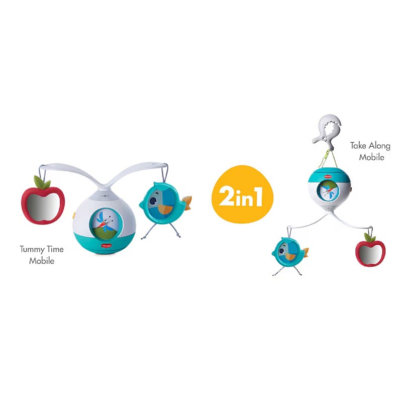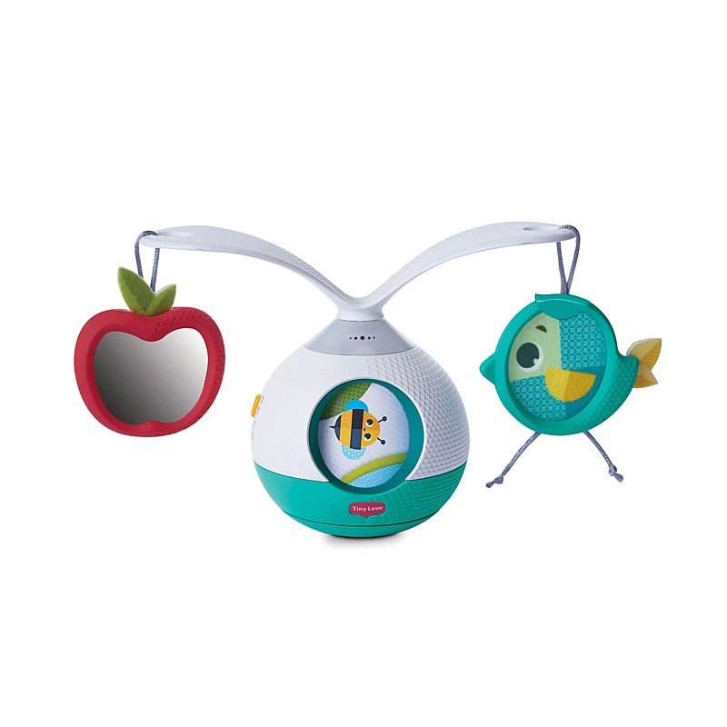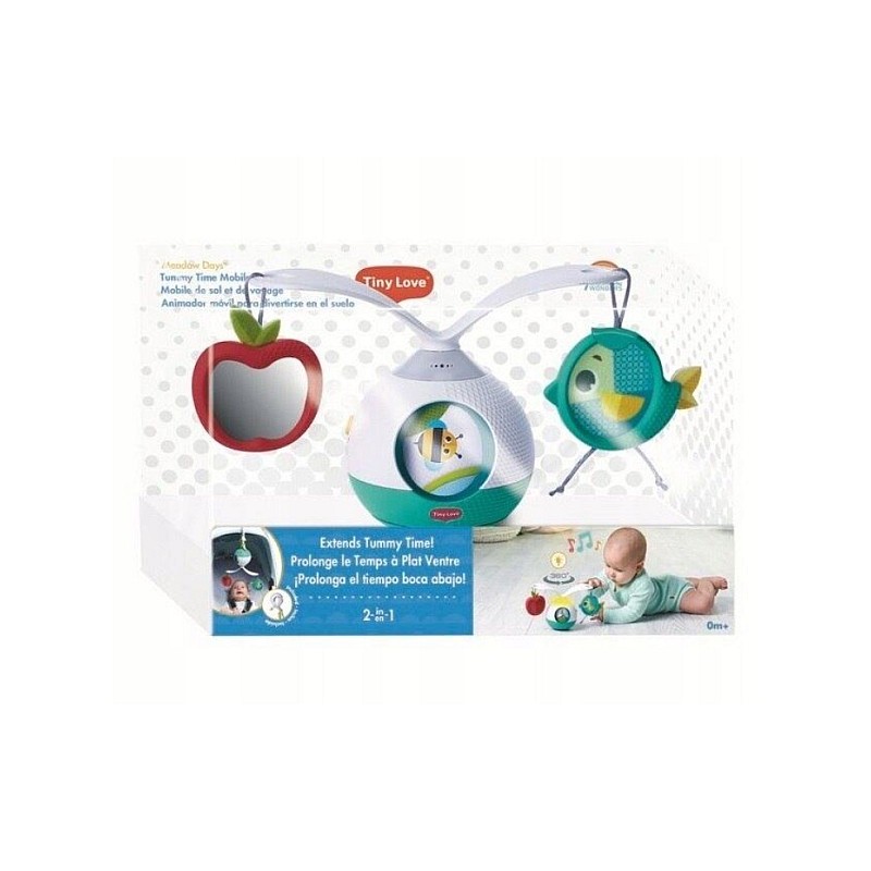 Place the mobile carousel at a suitable distance from the baby (about 25 cm away) and let him enjoy the sound and movement while he is on his tummy, helping him stay in this position as long as possible.