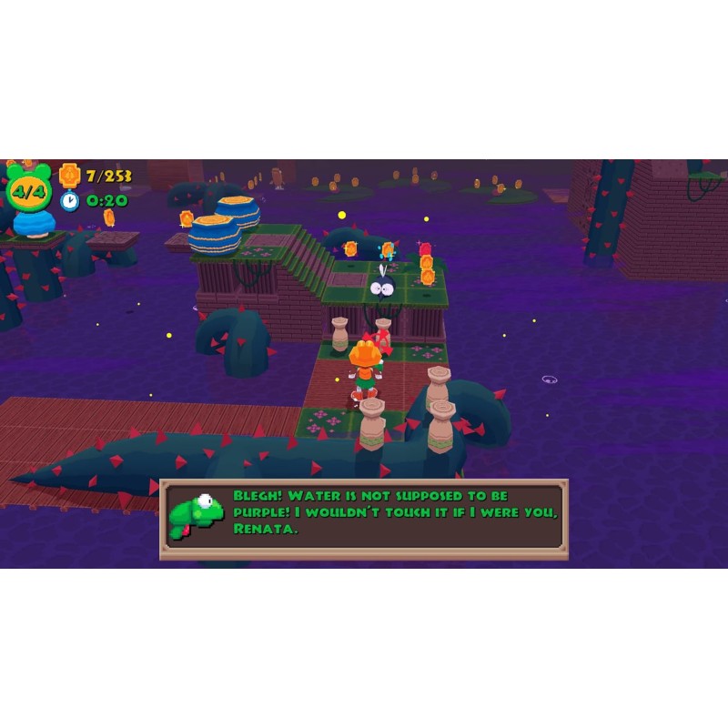 Join Renata on her adventures in a world of mystical ruins with the titular FROGUN! Frogun is an old-school platformer with the soul of the PS1/N64 era, where your frog-shaped grappling hook is a good friend!
