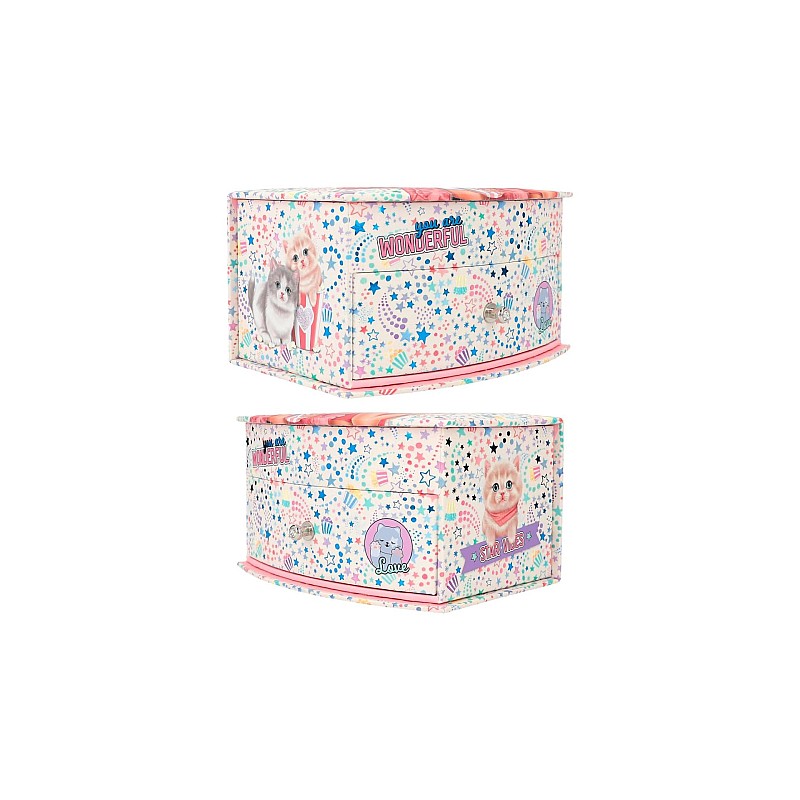 TOPModel Cutie Star small jewelry box with super cute stars all over, funny popcorn icons, cute kittens and a stylish printed pattern.