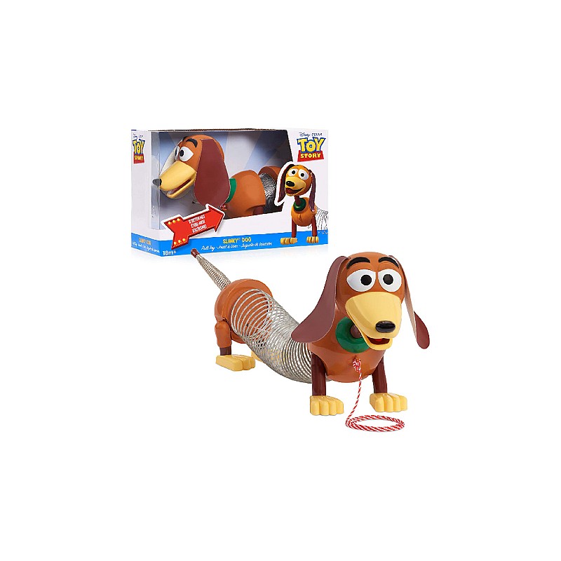 Pull Slinky Dog from Toy Story and watch him stretch. This fun Slink Dog toy moves and squirms as you pull it across the floor with the attached string.