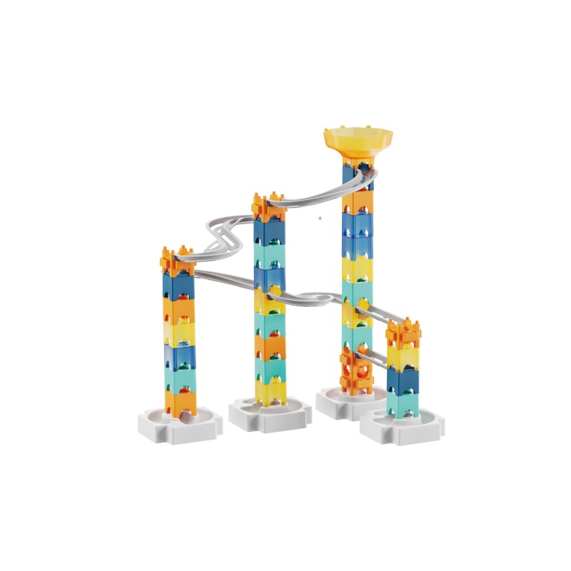 The parts can be joined together in different ways to create a different circuit every time.The circuit can be mounted with different heights and multiple ramps, so that the balls slide by themselves.