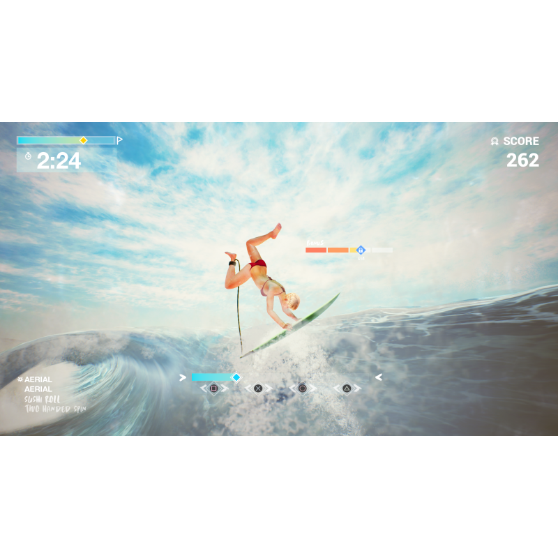 Perform the most intense surfing tricks, including the Superman and Sushi Roll, against 15 different surfers.