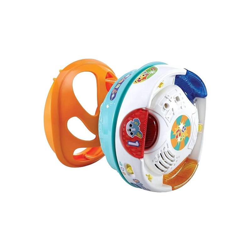 Spin, dance and kick with the 3-in-1 Magic Move Ball. This baby sensory toy has 3 easily transformable shapes: ball, roller and drum mode.