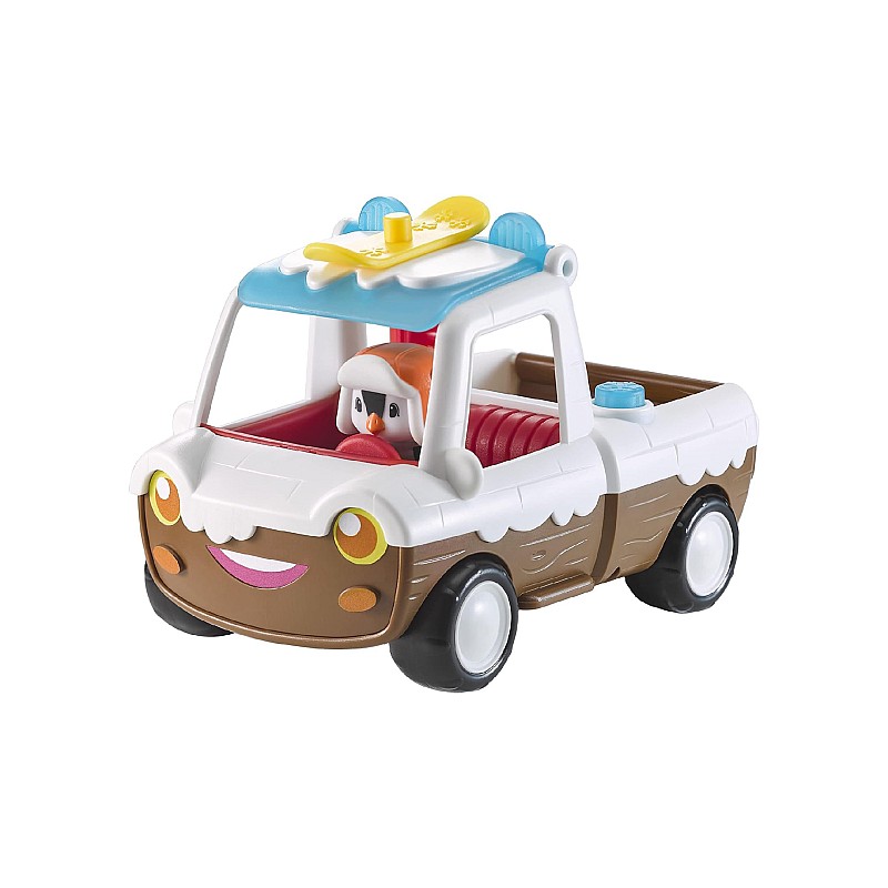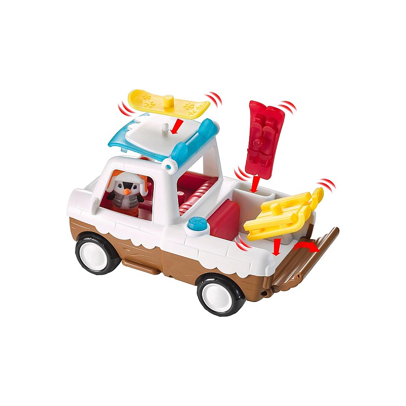 Place a figure ready to ski in the trunk, press the snowflake and the figure is magically launched.