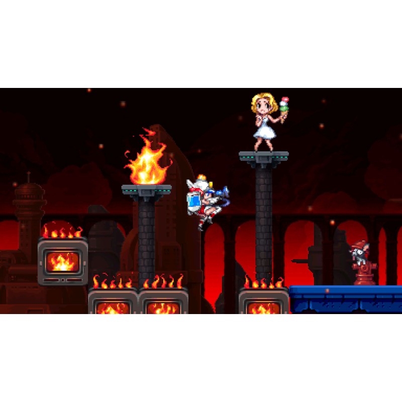 In Mighty Switch Force! 2, Officer Wagon changes his pellet gun with a fire hose while extinguishing a dangerous fire and rescues potential victims.