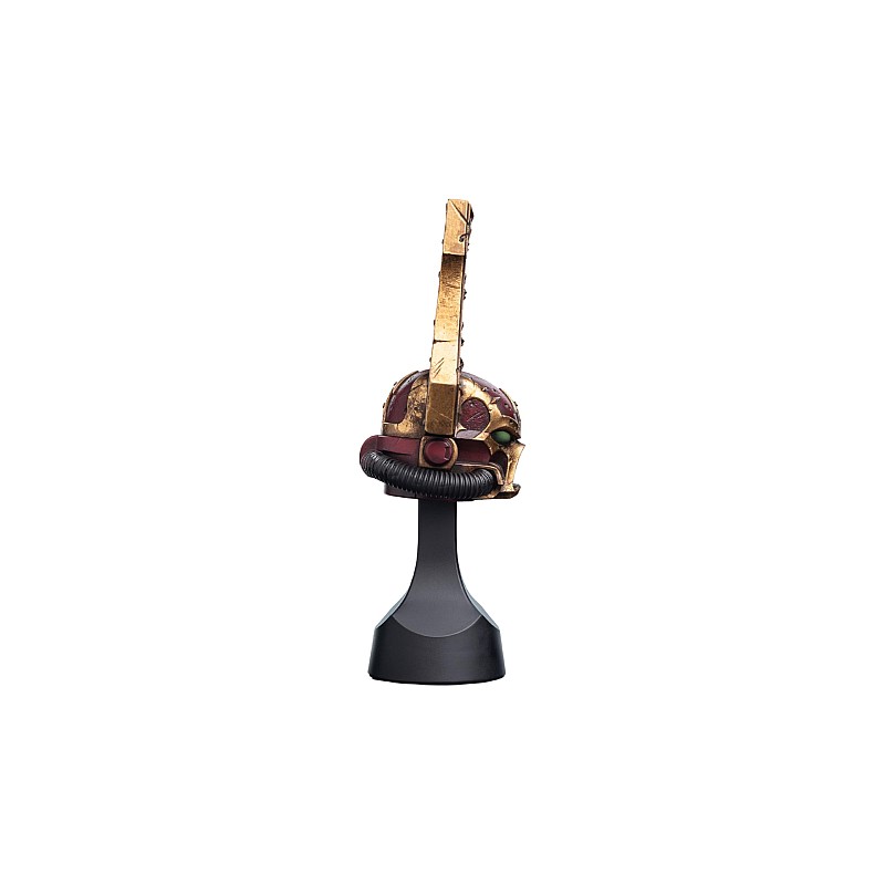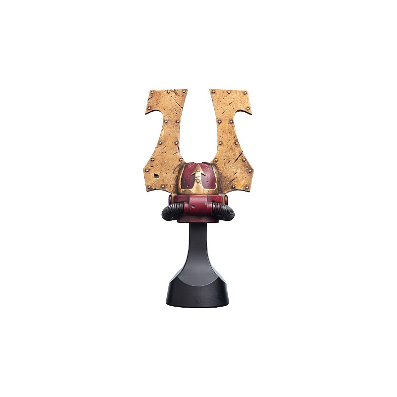 This replica captures the wild beauty of the helmet, from the deep purple shades to the imposing ridges adorned with brass.