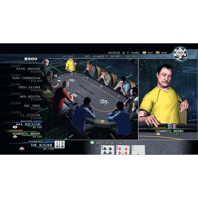 The game features Phil "The Poker Brat" Hellmuth Jr. world record holder of eleven WSOP bracelets in a special Beat The Brat Heads-Up mode and throws players into the high-stakes world of tournament poker to face off against other top pros in a bid to win the $10,000 Main Event championship bracelet and over $60 million in total prize money.