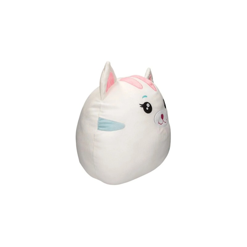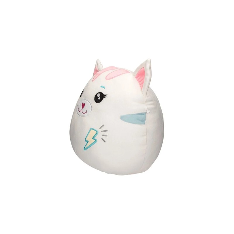 The round, white and wonderfully soft plush cat has super fluffy stuffing and cute pointy ears.