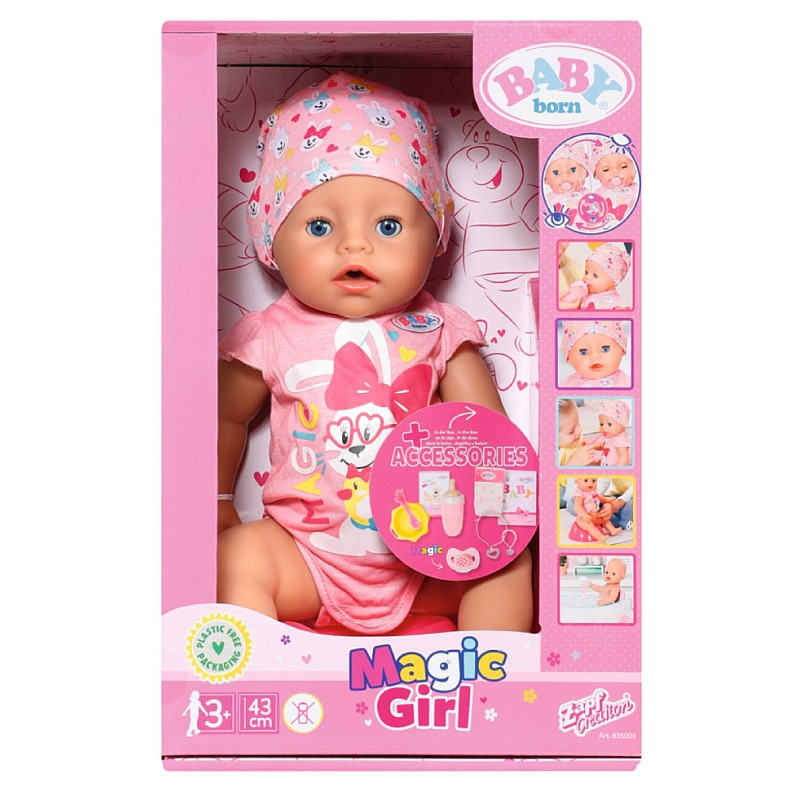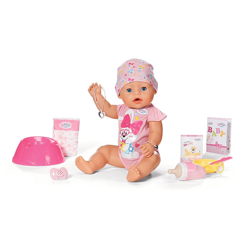 Includes: 1 potty, 1 diaper, 1 plate with spoon, 1 portion of porridge, 1 bottle, 1 magic pacifier, 1 birth certificate and 1 friendship bracelet for each baby and doll.