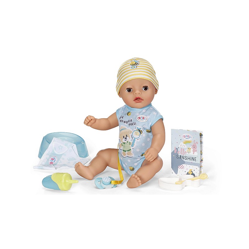 It may only have 36 cm, but Baby Born Lukas can drink water from the bottle, it can wet its diaper to change it or use the pink pot.