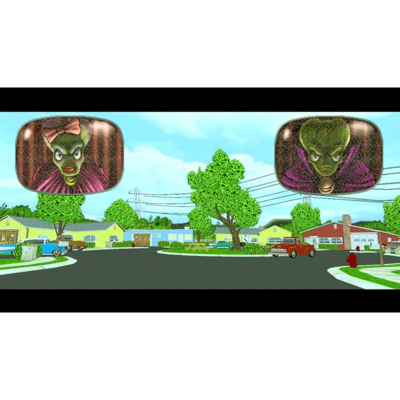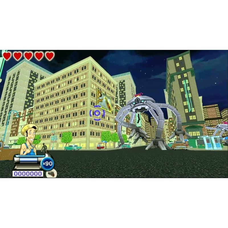 Everything in the game is rendered in a colorful comic book style with a retro 50s sci-fi vibe.