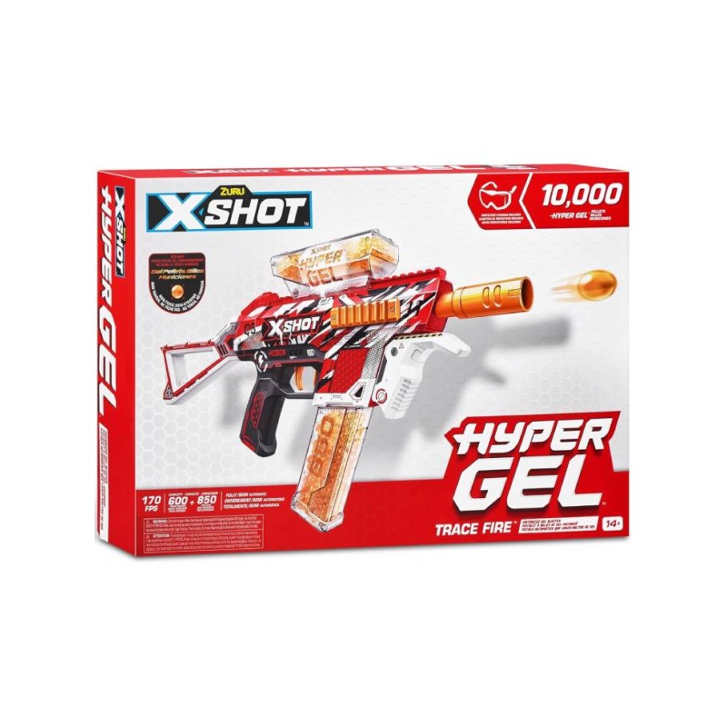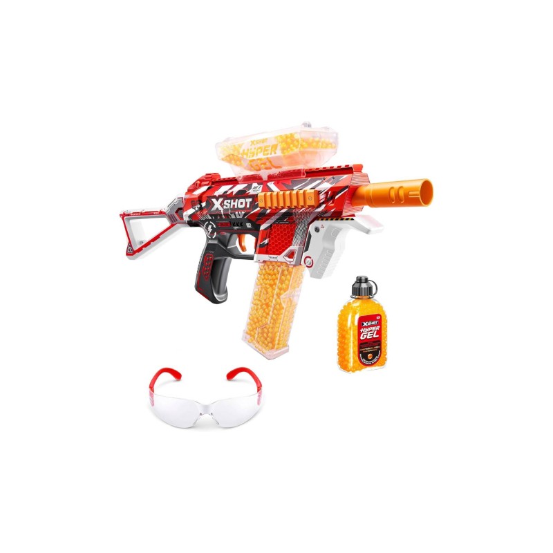 The set includes an X-Shot Zuru Hyper Gel Medium S1 blaster, a reserve of 10,000 hydrogel balls and a pair of goggles. Shooting distance reaches up to 27 m.