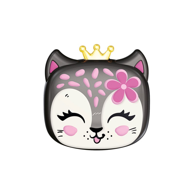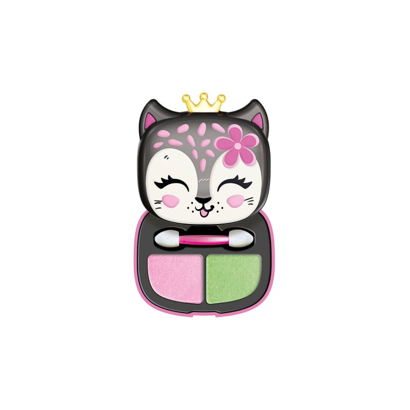 A mini makeup box in the shape of a baby animal and containing 2 eyeshadows, with a compact size to carry.